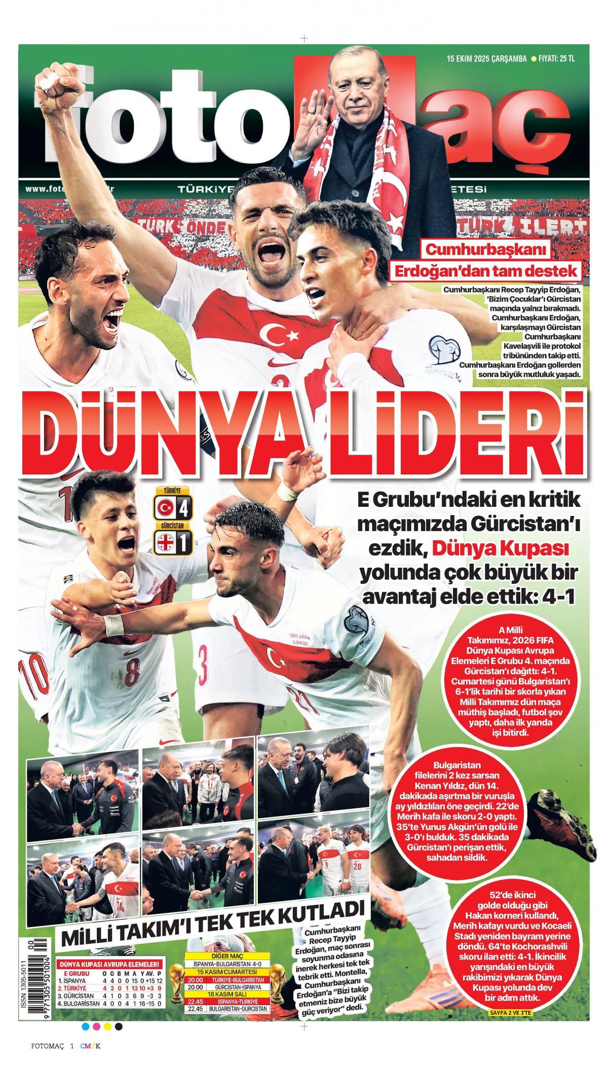 Fotomaç Gazetesi 15 Ekim 2025 Günü Manşeti
