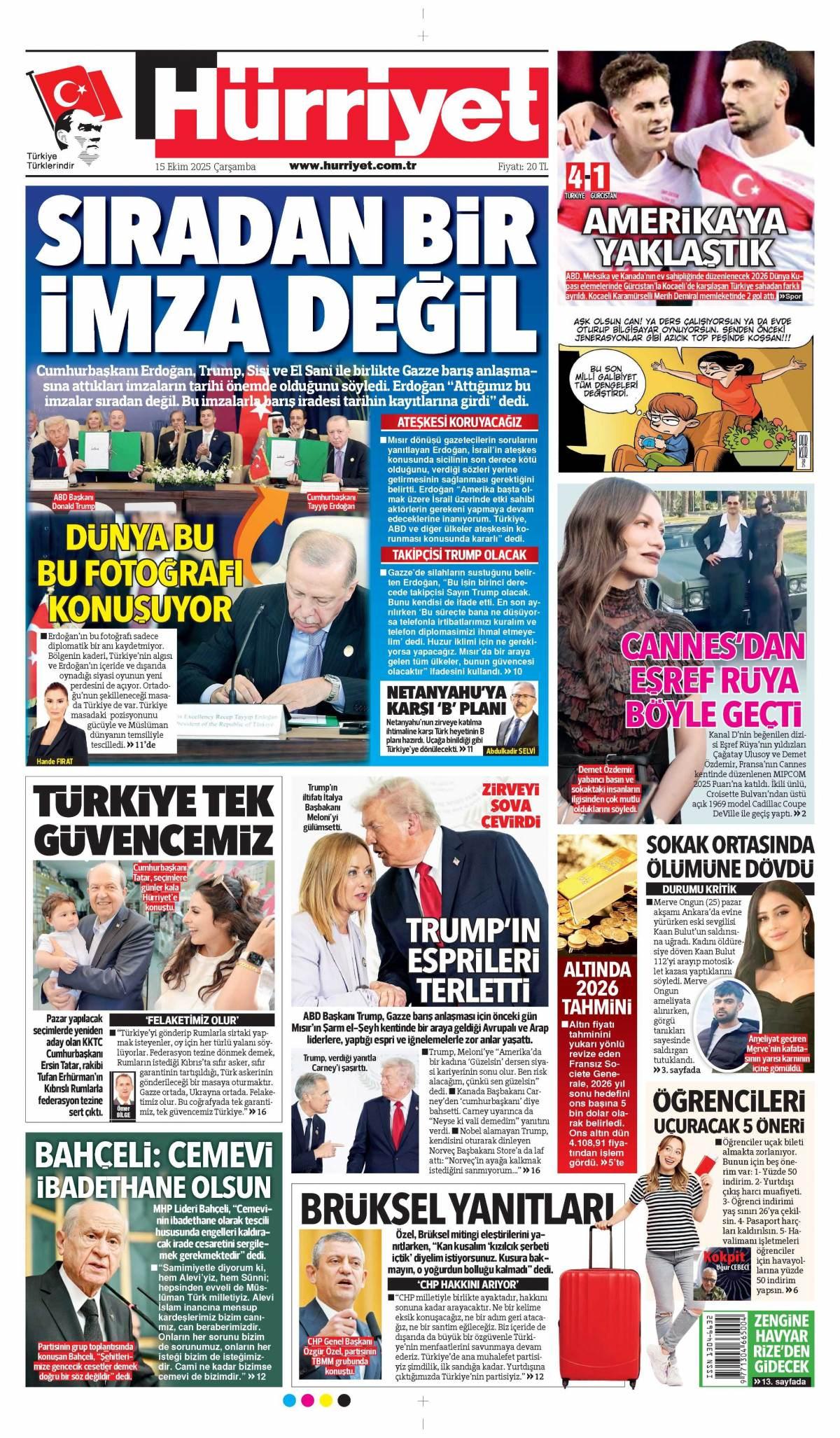 Hürriyet Gazetesi 15 Ekim 2025 Günü Manşeti