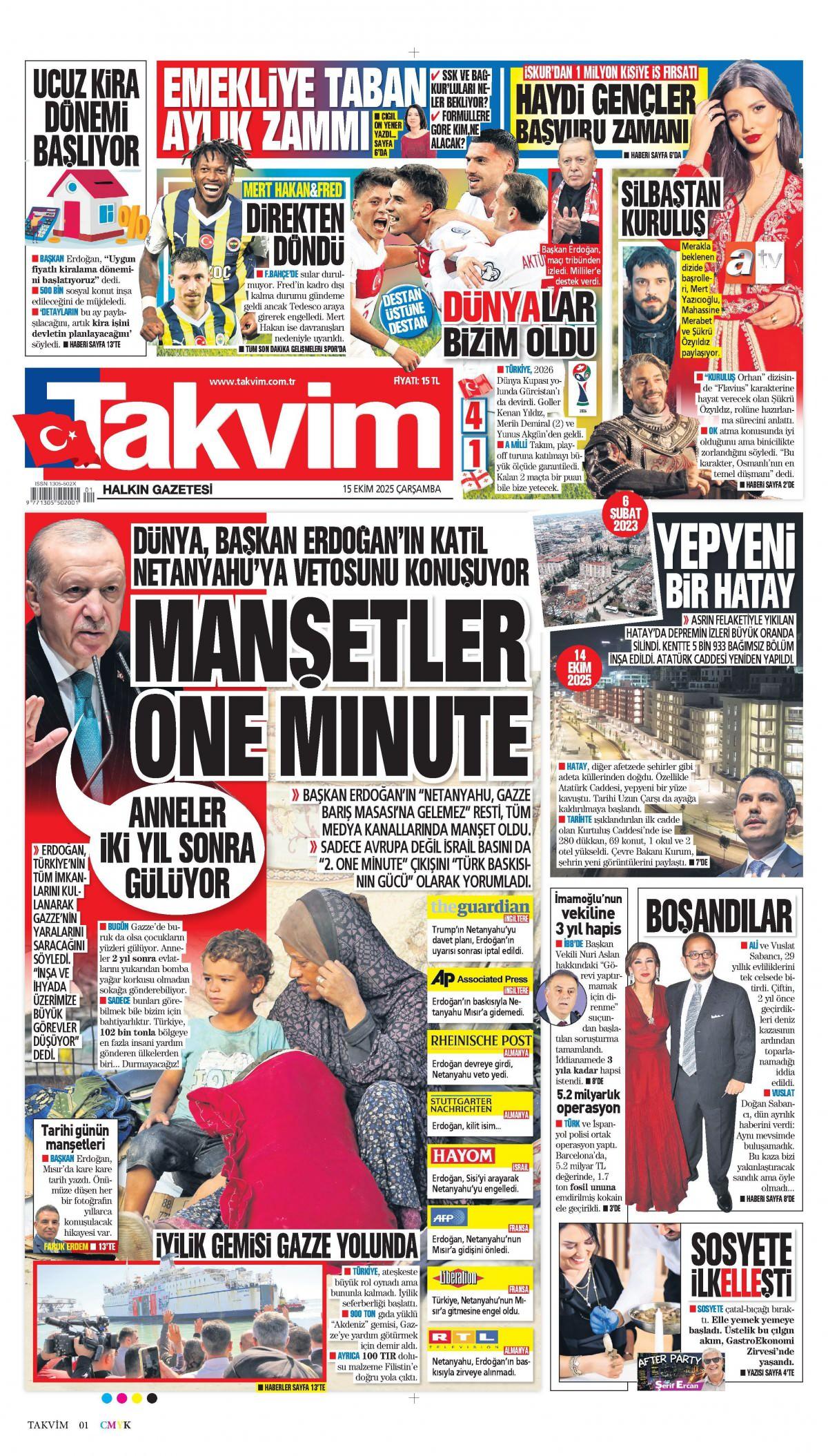 Takvim Gazetesi 15 Ekim 2025 Günü Manşeti
